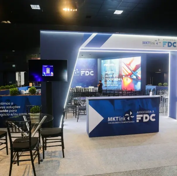 Feira de exposições dinâmica com demonstrações interativas de produtos e serviços.